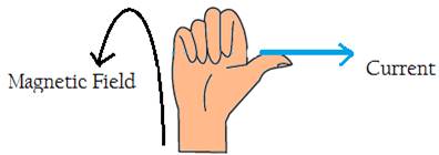 Explanation: if we curl our fingers of right hand in such a way that thump points towards the direction of current in wire than at the direction of induced magnetic field clockwise or anticlockwise in a plane perpendicular to direction of current will be shown by direction of curl fingers, direction at any particular point will be tangent to the circular loop at that point.