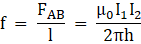 On re-arranging the equation, we get force acting per unit length on wire AB is