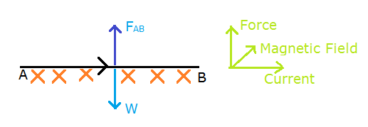 Where W is the weight of wire, m is the mass of wire and is acceleration due to gravity, the free body diagram of wire AB