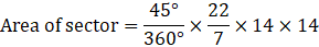 Find the area of the sector of a circle whose radius is 14 cm and angle of sector is 45°.