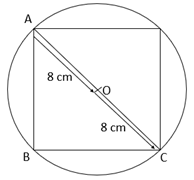 ∴ Diameter of the circle = AC = 2 × OC = 2 × 8 = 16 cm