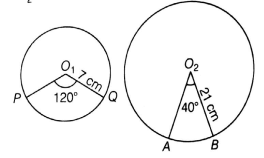 The central angles of two sectors of radii 7 cm and 21 cm are respectively 120° and 40°. Find the areas of the two sectors as well as the lengths of the corresponding arcs. What do you observe?