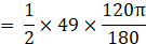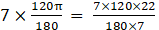 Central angle of one sector (in radians) = θ1 = (120π/180)