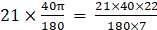 Central angle of second sector (in radians) = θ2 = (40π/180)