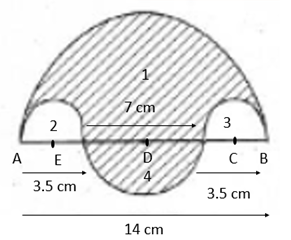 In the given figure the boundary of the shaded region consists of four semi-circular arcs, the smallest two being equal. If the diameter of the largest is 14 cm and of the smallest is 3.5 cm, find