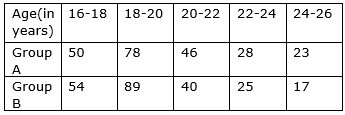 Compare the modal ages of two groups of students appearing for an entrance test: