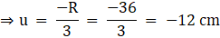 An erect image three times the size of the object is formed with a concave mirror of radius of curvature 36 cm. What is the position of the image?