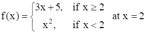 Find which of the functions is continuous or discontinuous at the indicated points: