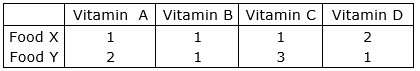 i.e. the minimum requirement of Vitamin A in the foods X and Y is 6units, each of which has 1unit and 2 unit of Vitamin A.