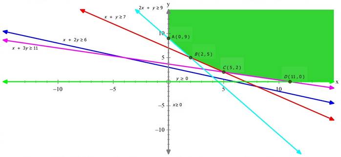(iii) x + 3y ≥ 11