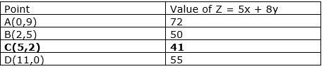 Minimises Z = 5x + 8y