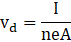 Where, vd is the drift speed of the electrons, I is the current, A is the area of cross section, e is the electronic charge and n is the density of electrons,