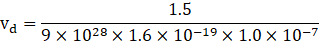 The drift speed of the electrons is given by,