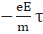 (i) First, We suppose a conductor with an electric field E. Let a free electron experience a force (-eE) in the electric field. Thus, the acceleration of free electron can be written as: