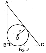 In Figure 3, a right triangle ABC circumscribes a circle of radius r. If AB and BC are of length 8 cm and 6 cm respectively, find the value of r. (CBSE 2012)