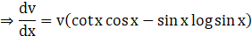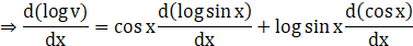 ⇒ log v = cos x log sin x