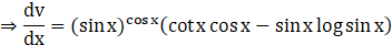 ⇒ log v = log (sin x)cos x