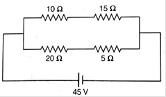 Here, the resistances 10Ω and 15Ω are connected in series and also the resistances 20Ω and 5Ω are also connected in series.