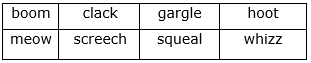 Onomatopoeic words are a combination of sounds that suggest what the words refer to. Hum, buzz, hiss, sizzle etc are a few examples. List at least ten words that you know.